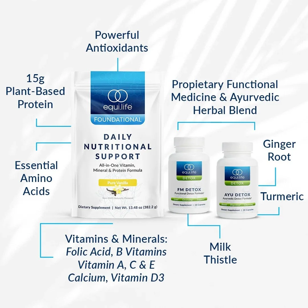 This is a comprehensive, full body Functional Medicine detoxification system that gently eliminates harmful toxins while rebalancing the body at an underlying root cause level.